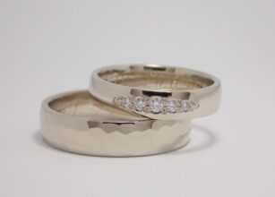 Svadobné obrúčky Aurora sú vyrobené z čistého bieleho 14kt zlata. Biele zlato je vo svojej originálnej farbe. Je možné ho dodatočne porhódiovať. Dámska obrúčka je zdobená diamantmi. Pánska je zdobená vzorom tisíc-hran. Obrúčky sú vďaka tomu jedinečné, stále pôsobia jemne a elegantne. Jemne oblý profil zaručuje komfortné nosenie. Diamanty: Rozmer 2,0 mm – 1ks 1,8mm […]
