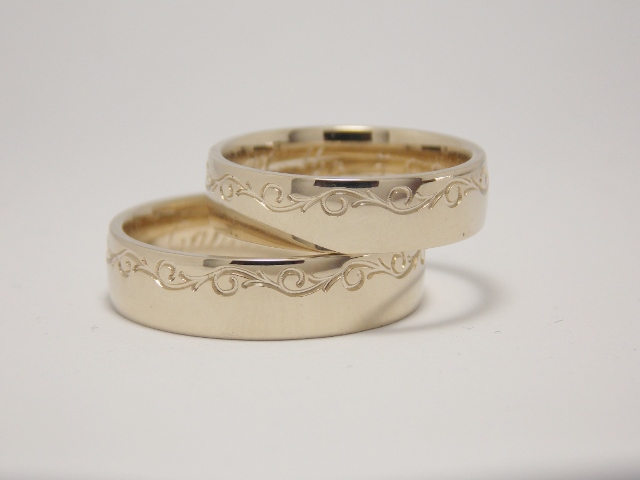Vnútro je vygravírované podľa želania zákazníka. Zákazník má možnosť meniť farbu zlata, šírku obrúčok, vonkajší profil prevedenia ako aj povrchovú úpravu.