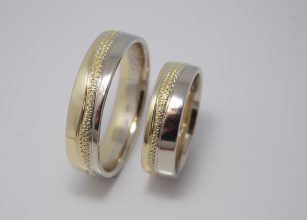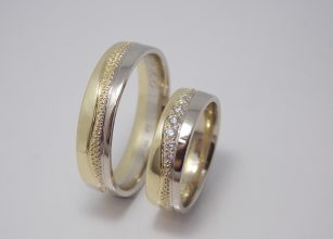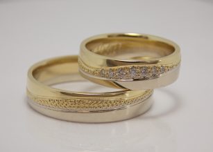 Svadobné obrúčky Charming sú vyrobené zo žltého a bieleho 14kt zlata. Farby zlata sú oddelené jemnou guličkovým vzorom v tvare vlnky po celom obvode. V dámskej obrúčke sú do tohto vzoru naviac osadené diamanty. Svadobné obrúčky sú v lesklom prevedení. Máte možnosť zmeny farieb zlata, šírky ako aj osadiť iný počet kameňov, inú veľkosť, prípadne […]