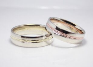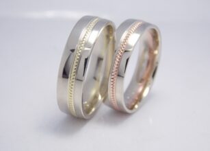Svadobný obrúčky Duo sú vyrobené kombináciami zo žltého, bieleho a červeného 14kt zlata. Pánska obrúčka je vyrobená z bieleho zlata a zdobená vzorom Milgrain po celom obvode zo žltého zlata. Dámska obrúčka je taktiež vyrobená z bieleho zlata a je zdobená vzorom Milgrain z červeného zlata po celom obvode obrúčky. Jemný vzor Milgrain dodáva obrúčkam […]