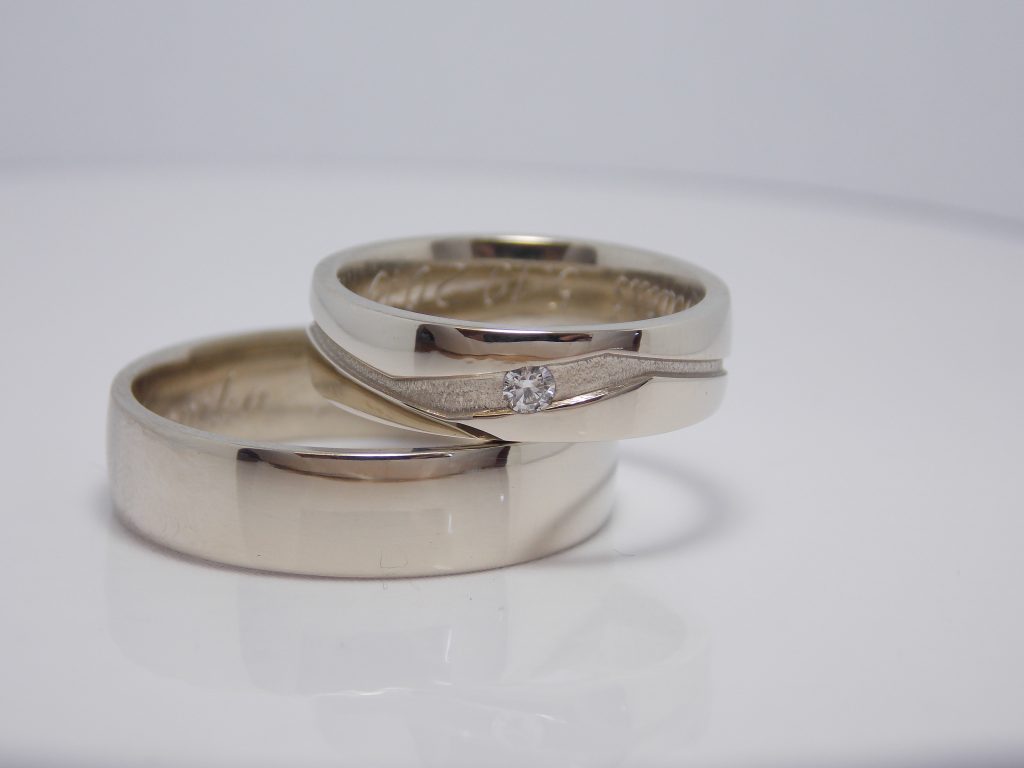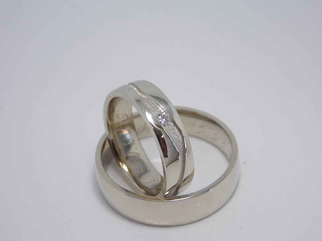 Svadobné obrúčky Fashion 2 sú vyrobené z bieleho 14kt zlata. Spodná biela obrúčka je v originálnej farbe a je zmatovaná. Vrchná časť je v leskom prevedení. V tomto spojení dotvárajú krásny efekt lesku a matu. V tomto prípade nedochádza k opotrebeniu matnej časti, nakoľko je pod úrovňou. V dámskej obrúčke je osadený diamant.