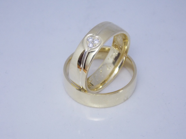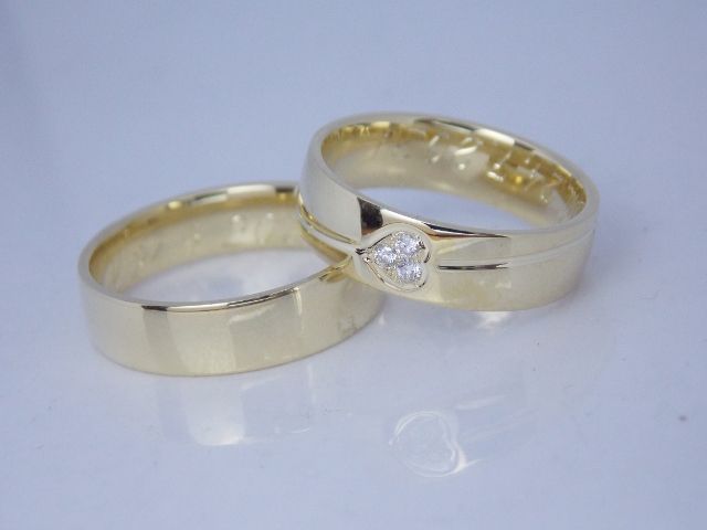 Svadobné obrúčky Heart sú symbolom lásky, ktorá nemá konca. Ich dizajn je čistý a nadčasový. Jemne zaoblený tvar prináša pohodlné nosenie a žlté 14kt zlato trvácnosť. Dámska obrúčka je spestrená osadenými diamantmi do tvaru srdca. Obe obrúčky sú ručne vyrobené v lesklom prevedení.