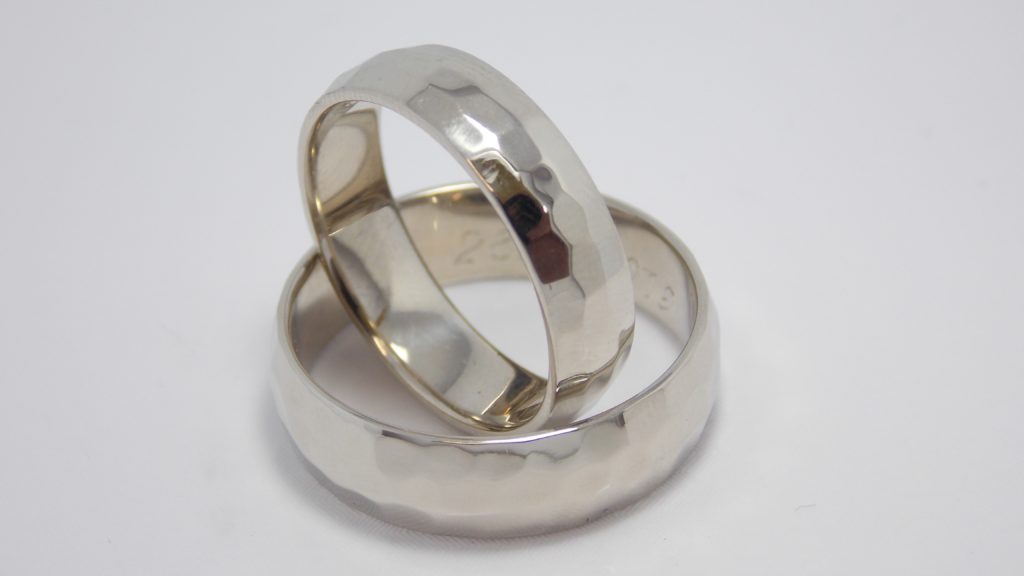 Svadobné obrúčky Thousand sú vyrobené z bieleho 14kt zlata. Sú v originálnej farbe bieleho zlata. Samozrejme je možné ich aj povrchovo upraviť rhódiovaním . Je na nich vzor, ktorý je jedinečný na každej obrúčke. Obrúčky môžu byť vyrobené aj v iných šírkach.