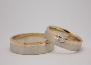 Svadobné obrúčky Twosome sú vyrobené z bieleho a červeného 14kt zlata. Obe obrúčky sú zdobené matnými, lesklými drážkami a vnútrom z červeného zlata. Dámska je obohatená o kvalitne osadený diamant. Jemne oblý profil zaručuje komfort pri nosení. Diamant: Rozmer  2,2 mm Hmotnosť 0,040 ct Čistota VS Farba F Vnútro je vygravírované podľa želania zákazníka. Zákazník […]